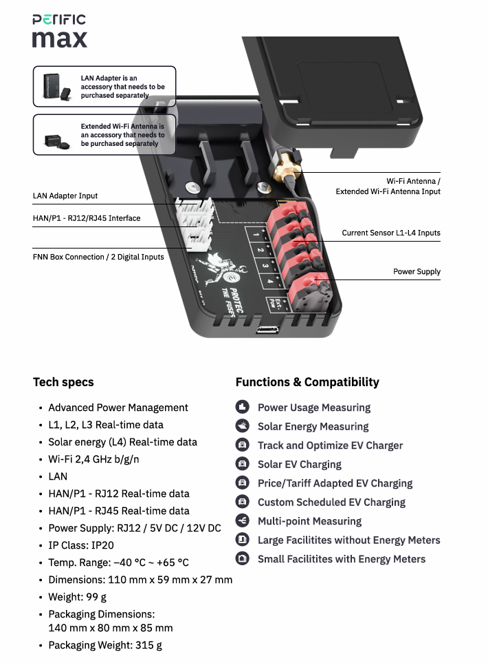 Max est un compteur d’énergie avancé conçu pour le contrôle dynamique de la puissance des stations de recharge de VE, compatible avec presque toutes les marques de chargeurs sur le marché. Avec Max, vous bénéficiez d’une recharge de VE plus sûre et plus rentable en équilibrant automatiquement la consommation d’énergie de la borne de recharge en fonction de la capacité de votre propriété.