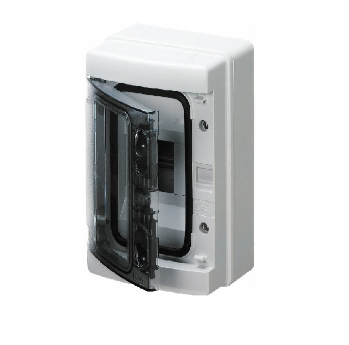 Gamme composée des coffrets étanches 40 CDK - IP65 avec châssis extractible et plastrons plombables à partir de 24 modules et de nombreux accessoires tels goulottes, serrures, couvercles esthétiques et plastrons pleins; les coffrets étanches 40 CD - IP55, avec points de centrage pour le perçage sur les parois, volet équipé d’une serrure pour chaque rangée modulaire; les coffrets design, protégés 40 CD - IP40, jusqu’à 72 modules en versions à porte transparente fumée et à porte pleine; les coffrets 40 CD - IP40 sans porte. Les coffrets en technopolymère sans halogène sont identifiés par le pictogramme HF - Halogen Free.